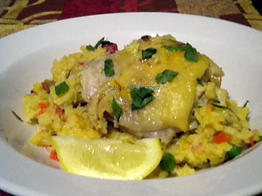 Cover and cook for about 20 minutes, until all the liquid is absorbed and the chicken is cooked through; the bird is done when an instant read thermometer inserted into the thickest part of the thigh reads 155-165 degrees.