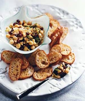 1.In a medium bowl, combine the chickpeas, pomegranate seeds, mint, scallions, oil, ¾ teaspoon salt, and ¼ teaspoon pepper. Serve with the bread.
