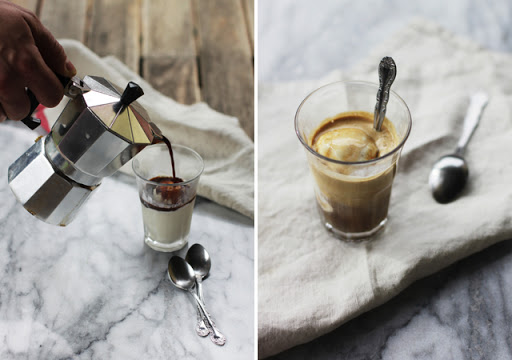 - 1 shot of espresso (made at home in the moka, machinetta or percolator will do)