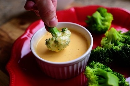 Serve ramekins of cheese sauce with warm broccoli florets.