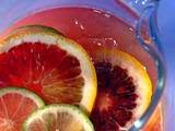 In a big pitcher mix together all the ingredients but the blood oranges. Pour into glasses and garnish with a few slices of blood orange.