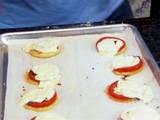 - 3 ounces (about 8 or 9 slices) fresh mozzarella, very thinly sliced