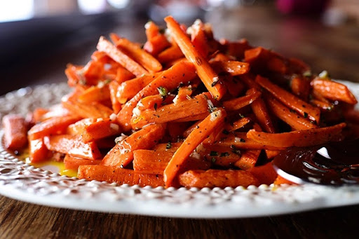 Place the carrots into a dish or platter. Pour over the vinaigrette and serve.