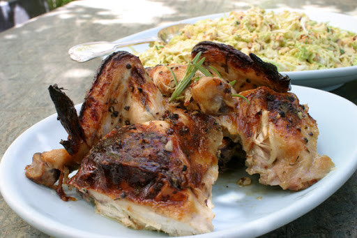 Butterfly chicken by placing breast side down and using heavy-duty kitchen shears to cut along both sides of backbone. Discard backbone, turn chicken over and open it like a book. Press gently to flatten it.