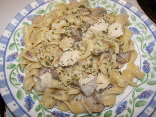 Dump all the yummy sauce over your drained egg noodles and mix gently to coat. Dish it up and sprinkle with parmesan cheese if desired.