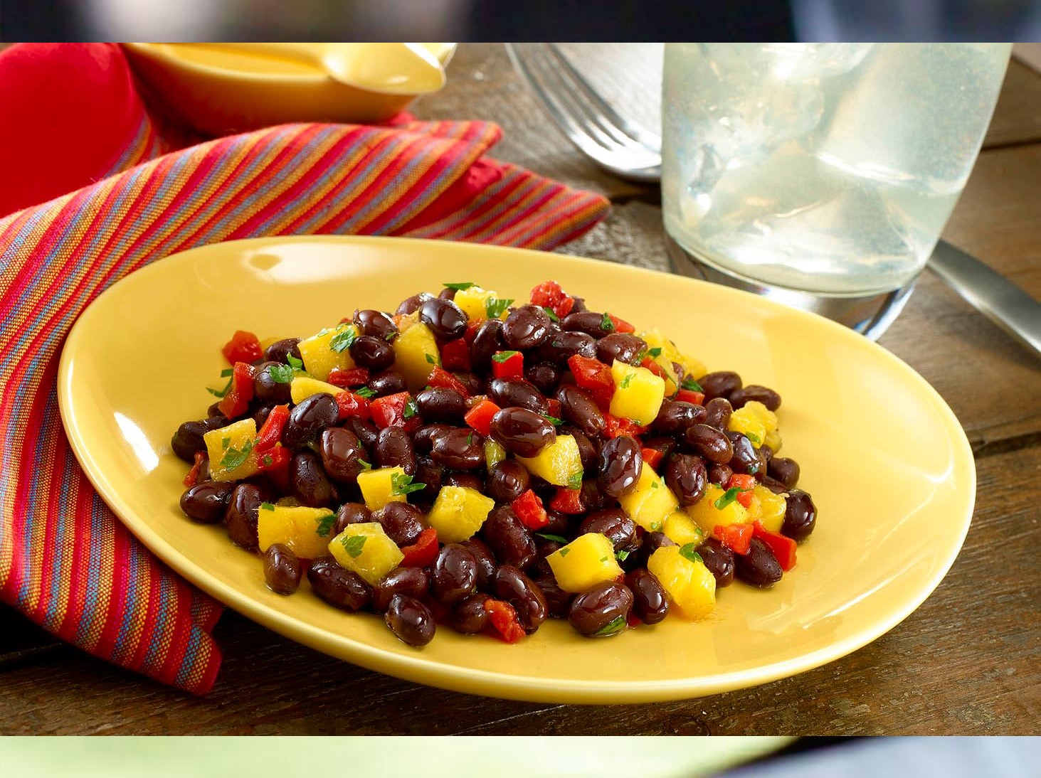 1 In medium bowl, add black beans, mango, pimientos and cilantro; set aside.