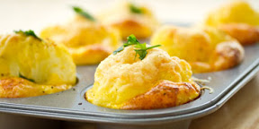 Farmer's Omelet: Substitute 1 pound apple wood smoked bacon, fried crisp and crumbled, for sausage. In a frying pan, heat 1 tablespoon of oil. Add 1 medium potato, diced, and saute 3 to 4 minutes. Add 1/2 medium onion, diced, and continue to saute until onion and potato are soft. Divide cooked bacon and vegetables between muffin cups. Continue as before.