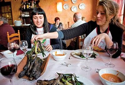 Traditionally, this recipe calls for Spanish calçots and ñora peppers. Scallions and ancho chiles are good substitutes.