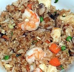Drizzle the soy sauce all around the rice and toss. Add the peas and carrots, the cooked eggs, shrimp and sesame oil, tossing to mix the rice evenly with all of the ingredients. Let everything heat back up again, until the rice grains are so hot they practically dance! Taste and add an additional 1 teaspoon of soy sauce if needed.