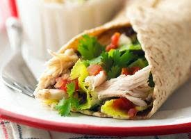 1. Spread Black Bean-Smoked Chile Dip on one side of each tortilla. Top with chicken, romaine, cilantro, and salsa. Roll up tortillas. If desired, secure with toothpicks.