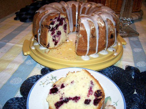 Drizzle the glaze over the top and sides of the cake and let it set before moving the cake to a plate and serving.