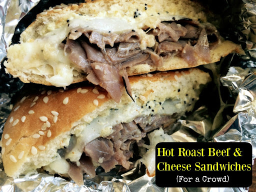 Combine the ingredients for the sauce.  Spread a thin layer on the inside of the top and bottom buns.  Put a slice of cheese on each half of the bun and pile the roast beef high in between.  Wrap them each in foil and label if you are doing another kind.  ( I did ham and cheese as well)  Bake right away or store in the fridge until needed!