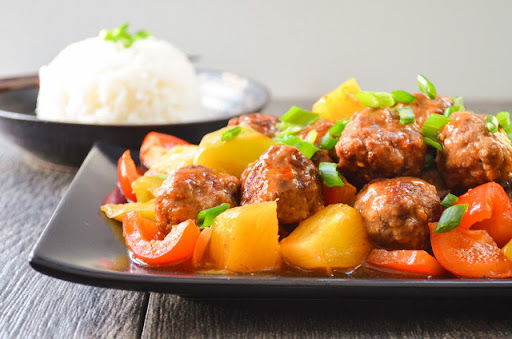 1. For Meatballs: In a large bowl mix together ground beef, ground pork, panko bread crumbs, egg, garlic, 1 tablespoon soy sauce, sesame seed oil and granulated garlic until well combined.