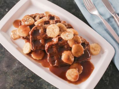 Banana Bread Waffles with Bananas Foster Sauce
