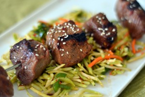 Add sirloin and toss to coat; set aside to marinate. Marinate at least 20 minutes. Can marinate longer.