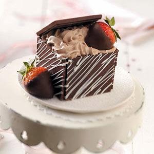 * Reheat dipping chocolate if necessary. Dip the long sides of remaining candy bar halves into melted chocolate; adhere to a top edge of each box, forming a lid. Garnish with strawberries. Refrigerate for 10 minutes or until set.