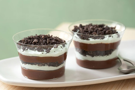 Layer half each of the pudding, COOL WHIP and cookie mixture evenly in 12 parfait glasses. Repeat layers. Refrigerate 30 min.