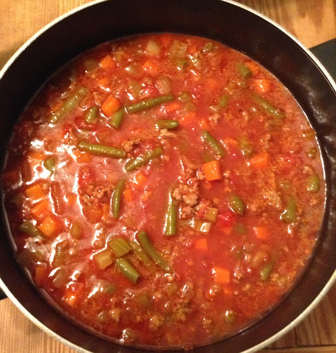 Pour in beef broth and other vegetables