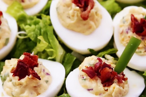 Mash egg yolks in with minced jalapeño, add cheese, mayo, onion and mustard. You may add more mayo as needed if you prefer creamier deviled eggs.