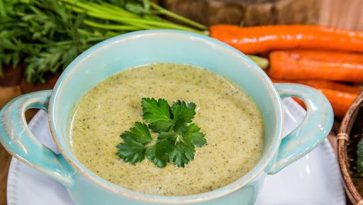 5. Simmer uncovered until broccoli is tender--about 15 minutes. pour in cream. with an immersion blender, purée the soup.