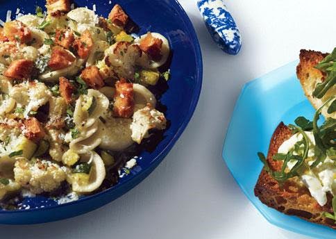 Orecchiette with Cauliflower, Anchovies, and Fried Croutons
