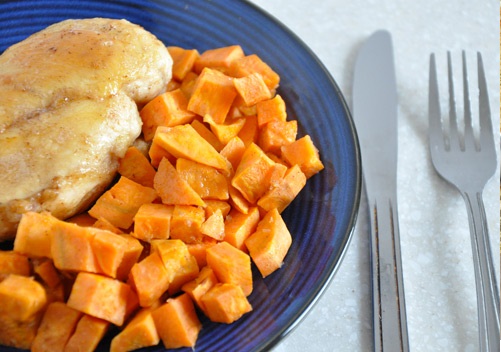• 3 medium sweet potatoes, peeled and sliced into 1” chunks
