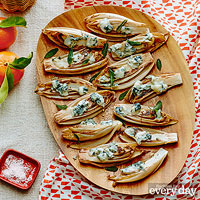 Place the endives on a baking sheet. Brush with some of the sage oil and turn cut side down on the baking sheet. Roast until the leaves are lightly wilted and browned in spots, about 4 minutes. Turn over and roast until the tops are browned, about 4 minutes more.