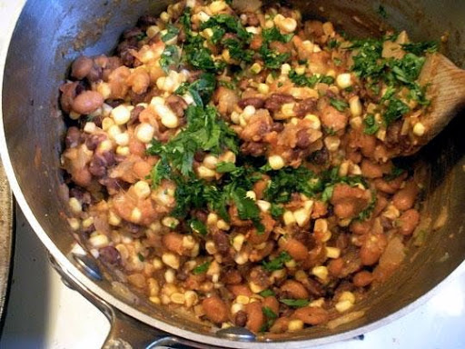 6. Add the beans (rinced and drained) and cilantro and cook until the beans are heated through.