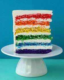 3.Divide batter evenly between six medium bowls. Add enough of each color of food coloring to each bowl, whisking, until desired shade is reached. Transfer each color to an individual cake pan. Transfer to oven and bake until a cake tester inserted into the center of each cake comes out clean, about 15 minutes (working in batches if necessary).