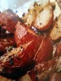 Cut the potatoes in halves or quarters, depending on their size, and place them on a sheet pan. Remove the ends of the onions, peel them, and cut them in half. Slice them crosswise in 1/4 inch thick slices to make half rounds. Toss the onions and potatoes together on the sheet pan. Add the olive oil, mustard, 2 tsp salt and the pepper and toss them together. Bake for 50-60 minutes until the potatoes are lightly browned on the outside and tender on the inside. Toss the potatoes from time to time with a metal spatula so them brown evenly.
