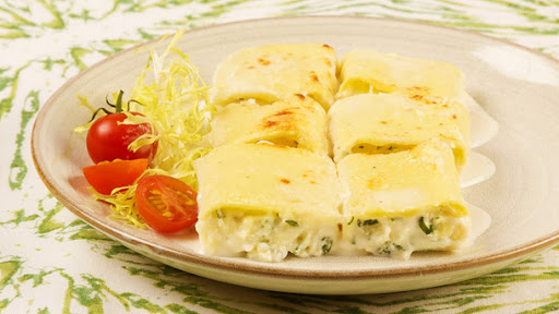 Three Cheese Rotolo with White Sauce