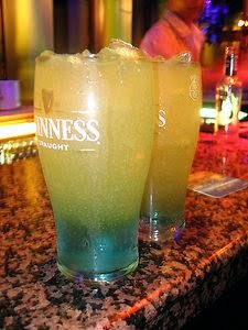 Get 2 pint glasses, pour one half of Smirnoff Ice into one pint glass and the rest in the other glass, then do the same with the orange breezer, then followed by the Blue WKD. Mix, and the drink should turn green. Add ice as desired, and serve.