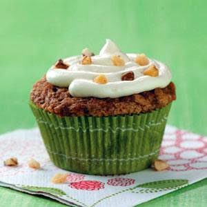 * For frosting, in a small bowl, beat cream cheese and butter until smooth. Beat in the chocolate, cream and extracts. Gradually beat in confectioners' sugar until smooth. Pipe or spread over cupcakes, garnish with walnuts is desired. Store in the refrigerator.