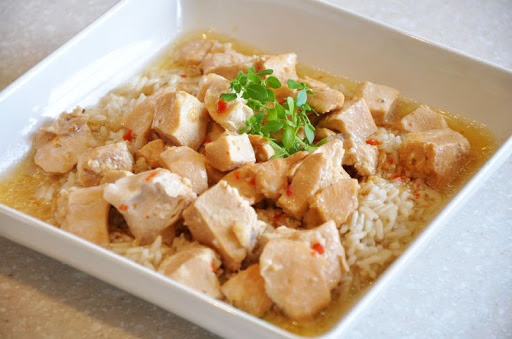 4. Serve over cooked rice, along with extra sauce from the chicken.