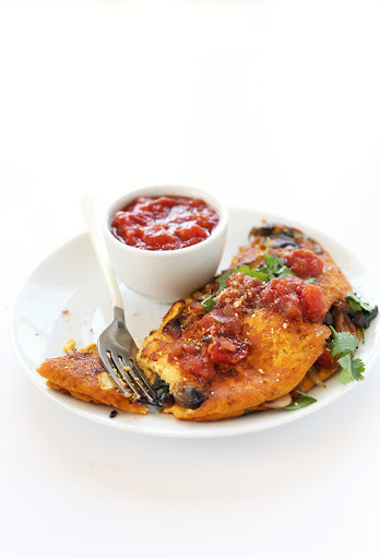 Serve with desired toppings. I went with salsa, vegan parmesan cheese, cilantro and toast.
