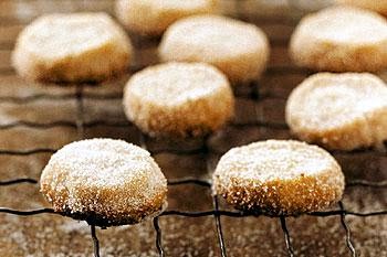 Bake, 1 sheet at a time, until bottom edges just begin to turn pale golden, 12 to 15 minutes. Cool cookies on sheet 2 minutes. Place remaining 3 tablespoons sugar in a small dish and dip tops of cookies in it, then cool sugared cookies on a rack.