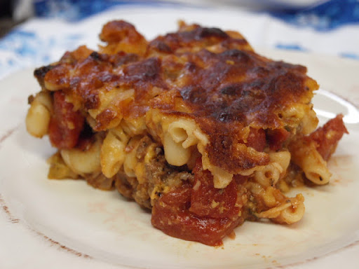 In a large bowl mix cooked noodles with meat mixture. Mix in 1 to 1 ½ packages of cheese. I use both shredded cheddar and mozzarella mixed together. And don’t be afraid to add more cheese, if like me, you love cheese!