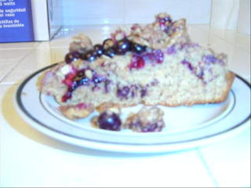 2 Pour into a greased 9-inch baking pan, then spread the berries over the batter.