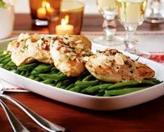 6. Arrange chicken and beans on warm serving plates. Nap with sauce and garnish with remaining almonds and additional chopped parsley. Serve with basmati rice or mashed potatoes.