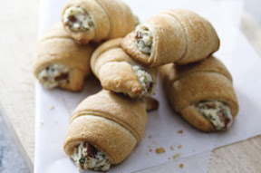 SEPARATE each can of dough into 8 triangles; cut each triangle lengthwise in half. Spread each dough triangle with 1 generous tsp. cream cheese mixture; roll up, starting at short side of triangle. Place, point-sides down, on baking sheet.