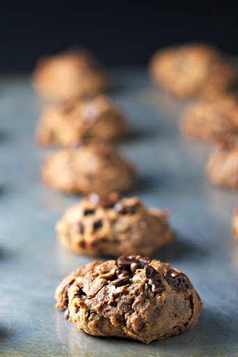 Add all ingredients except for the chocolate chips into a food processor. Blend for a few minutes or until well combined. Cookie dough should smooth and creamy.
