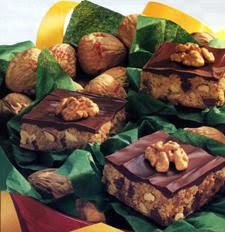 Immediately sprinkle remaining ⅔ cup semi-sweet chocolate morsels over top. Let stand until morsels become shiny and soft. Spread chocolate evenly over top. Garnish with walnut halves. When cool, chill 5 10 minutes to set chocolate. Cut into 2 x 1-inch bars.