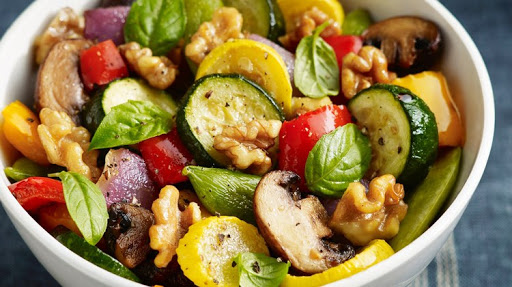 Roasted Vegetables with Walnuts, Basil and Balsamic Vinaigrette