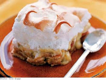 Spoon meringue over hot custard immediately, making sure that meringue touches baking dish on all sides (this prevents it from shrinking). Transfer to oven and bake until golden, about 20 minutes. Remove pudding from oven and cool 1 hour. Refrigerate at least 4 hours before serving.