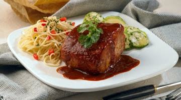 5 Al salir el lomo, rebanarlo y bañarlo con el resto de Mole Poblano caliente. Servir.
