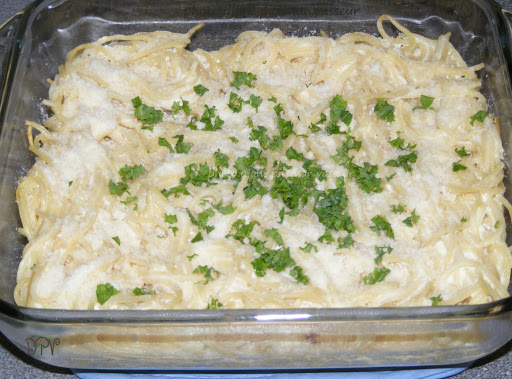 Bake for 18 minutes, then remove foil and continue to bake 7-8 more minutes. (Pasta will dry out on top if baked too long).