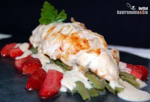 POLLO AL AJO BLANCO DE COCO Y FRESAS