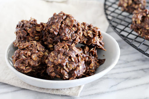 Remove from heat and add the oats and coconut flakes, stirring continuously. Add the flaxseeds, vanilla extract and cocoa powder and continue stirring until mixture becomes thick.