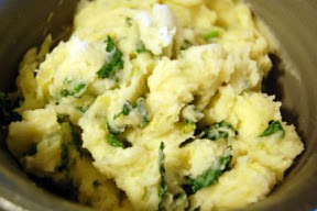5. When potatoes are done, add to cabbage mixture and mash with a potato masher until fluffy and smooth with some chunks. Season to taste. Serve hot.