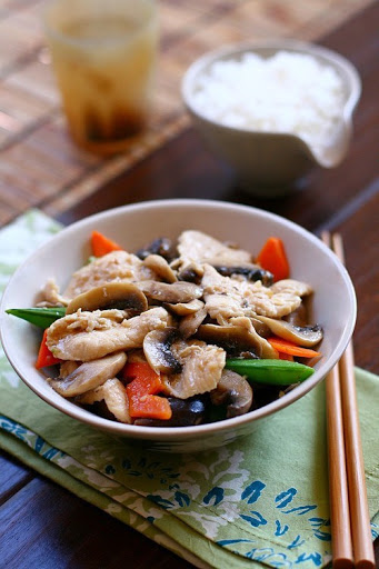 In a bowl, prepare the marinade. Lightly beat the egg white, and mix well with the rest of the marinade ingredients. Marinade the chicken, coat well and let it sit, making sure that all the egg whites are well soaked at the end of the marination process. This will ensure a smooth and silky texture when the chicken is cooked. Discard any excess marinade.
